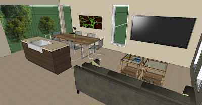 I am playing with colors for the Tree Wall Art, I am presently leaning toward the green with white tree or brown with green tree. The colors are taken from what we see in the house, the red Diem wall, the accent green from the back splash, the brown from the wood. This piece was previously made of wood but I am changing it to be made of a material call QuietBrace (http://www.homedepot.com/p/QuietBrace-1-2-in-x-4-ft-x-8-ft-Sound-Deadening-Structural-Insulating-Sheathing-3103308/202089176#.UVcoJxwqZf8) which is a sounds dampening material, which I will cover with felt with the design and colors. These panels will not only look like art but will function as acoustic panels. I have also increased the size of the piece to be the same length as the TV to bring balance to the space. If anyone has any feed back on the colors, or any other ideas of color combination or the previous size (small) or larger size, which can be seen below in comparison to the TV. I am more than happy to get feedback!